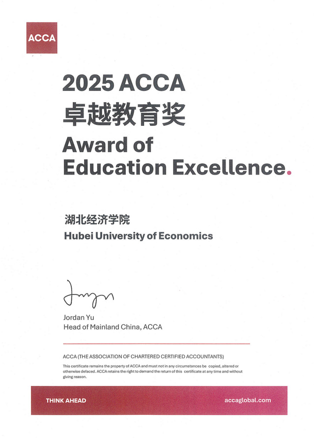 湖北经济学院会计系教师代表蔡程应邀参会,湖北经济学院荣获第十六届ACCA“卓越教育奖”。