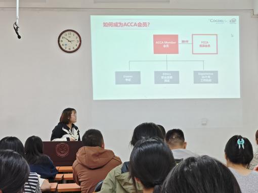 讲座伊始,ACCA班主任李老师首先对ACCA整体课程体系作了系统介绍,并详细解读了ACCA专业资格改革政策,帮助同学们建立起对ACCA课程结构与发展路径的清晰认知。随后,她围绕课程安排、学习规划与未来职业发展等多个维度展开深入讲解。在学习支持方面,李老师重点介绍了后续的课程设置与线上平台资源的运用方式,并结合往年经验,为2025级新生分享了实用的ACCA学习与备考策略。在未来发展方面,李老师详细介绍了未来可提供的实习资源、出国留学支持、海外硕士申请机会以及名校研学项目。最后,李老师也向新生说明了后期ACCA班的学习方向及活动安排,旨在激发学生的学习热情,营造积极向上的学习氛围,助力提升ACCA班级整体水平,在磨砺专业能力的同时打造具有特色的ACCA班级。