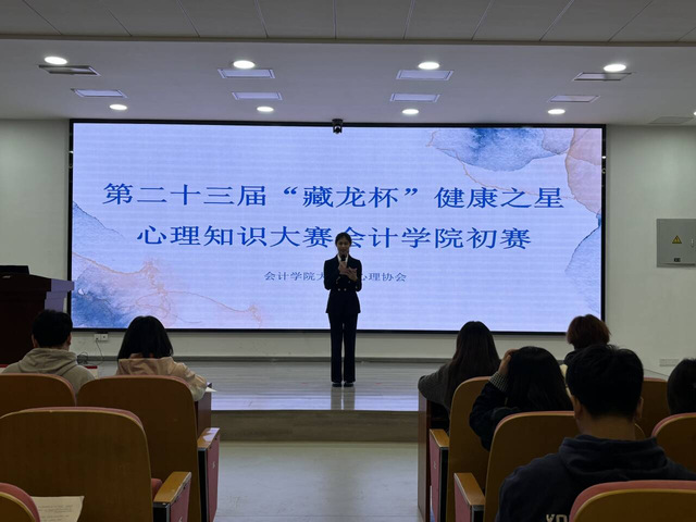 2025年11月9日,湖北经济学院会计学院大学生心理协会举办的“艺心润心灵,绘梦向未来”——第二十三届“藏龙杯”健康之星心理知识大赛会计学院初赛在教三102会议室顺利举行。活动旨在通过演讲比赛的形式,让学生主动学习心理知识,提升心理调适与情绪调节能力,营造“学心理,懂心理,用心理”,关注心理健康的校园氛围,激发学生关注自身与他人心理健康的主动性,促进全面发展,现场氛围温馨又不失庄重。
