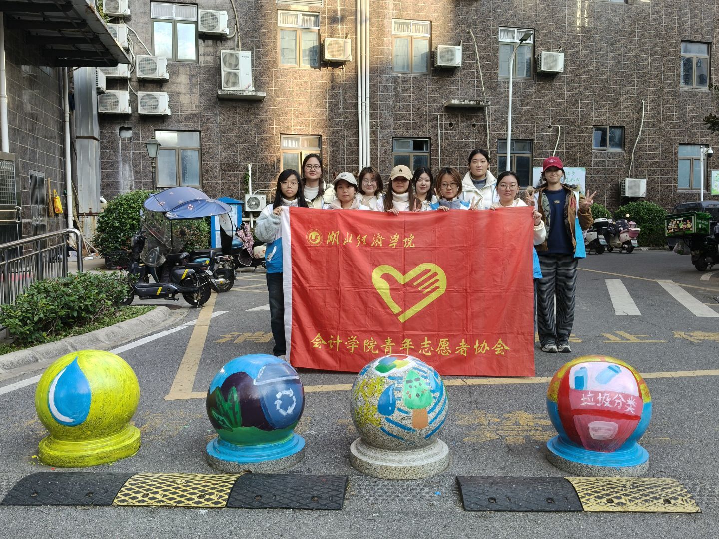 为深化垃圾分类宣传教育,美化社区公共环境,2025年11月20日下午,湖北经济学院会计学院青年志愿者协会联合今城社区高鑫名居小区,成功举办“墩上添彩,圾时分类”主题石墩绘画活动。志愿者以创意画笔为载体,将垃圾分类知识融入艺术创作,为社区注入环保活力。