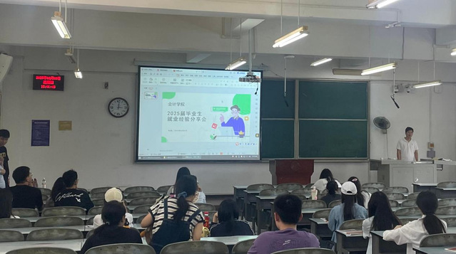 为切实提升会计学院专业人才培养质量,帮助学生明晰职业发展方向、增强就业核心竞争力,6 月 5 日下午,会计学院研究生职业规划系列讲座在教五顺利举行,此次讲座主题是毕业生就业经验分享。本次讲座聚焦就业现状与实战技巧,为即将踏入求职赛道的毕业生们搭建了经验交流与答疑解惑的优质平台。