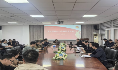 4月2日下午,会计学院2026年教职工大会在群贤楼215会议室召开,会议由院党委书记李阳阳主持。