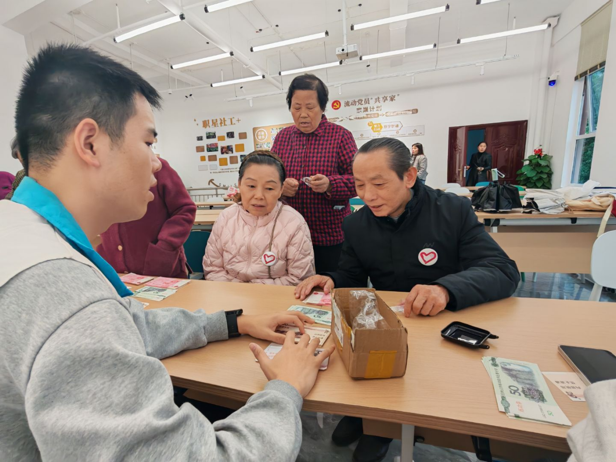 活动围绕三个精心设计的互动环节有序推进。开场的“财商知识盲盒问答”,居民积极抽题,在答题中学习储蓄、防诈知识,现场气氛火热,不少居民表示学到了很多以前忽略的储蓄和理财要点。接着“练功券点钞”比赛,锻炼专注力与数字敏感度。最后的“钱财分类”游戏,助居民树立家庭资产配置观念。