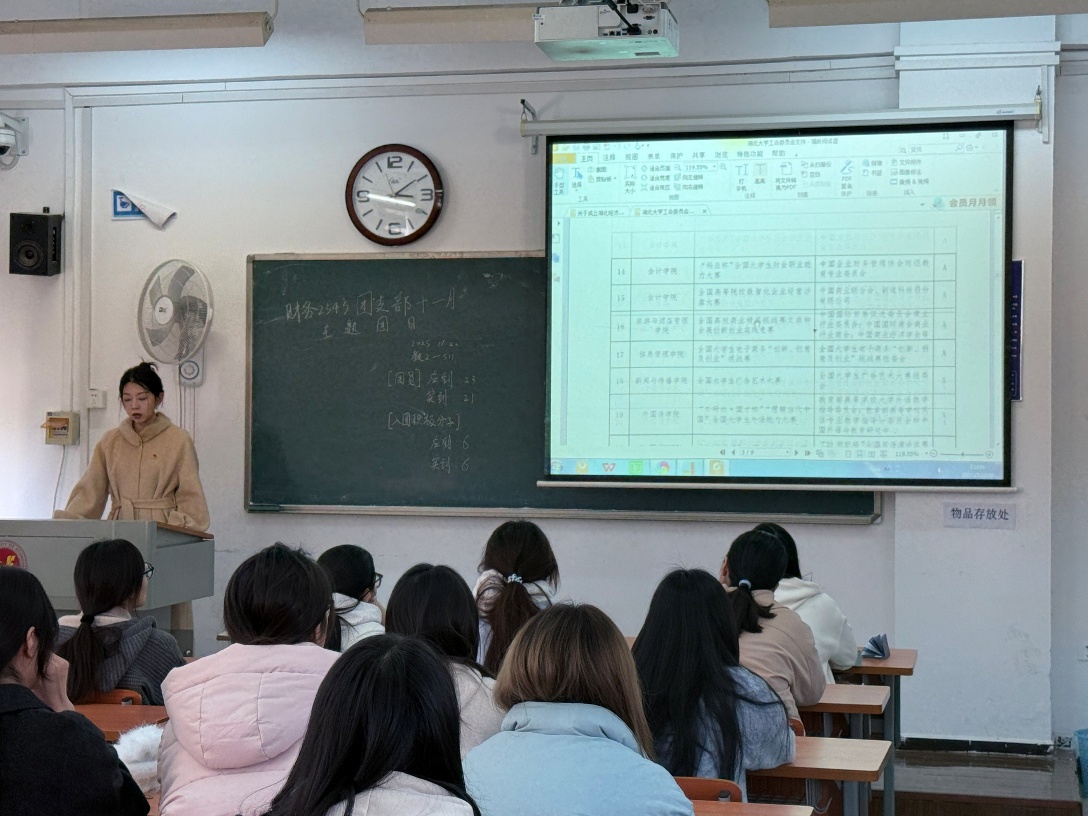 为深入学习贯彻党的二十大和二十届四中全会精神,认真学习贯彻习近平总书记考察湖北重要讲话精神,持续深化“悦学习•跃青春”思政工作品牌,激活“三会两制一课”,赋能基层团支部建设,会计学院各团支部开展11团日活动。本次活动以线下形式开展。